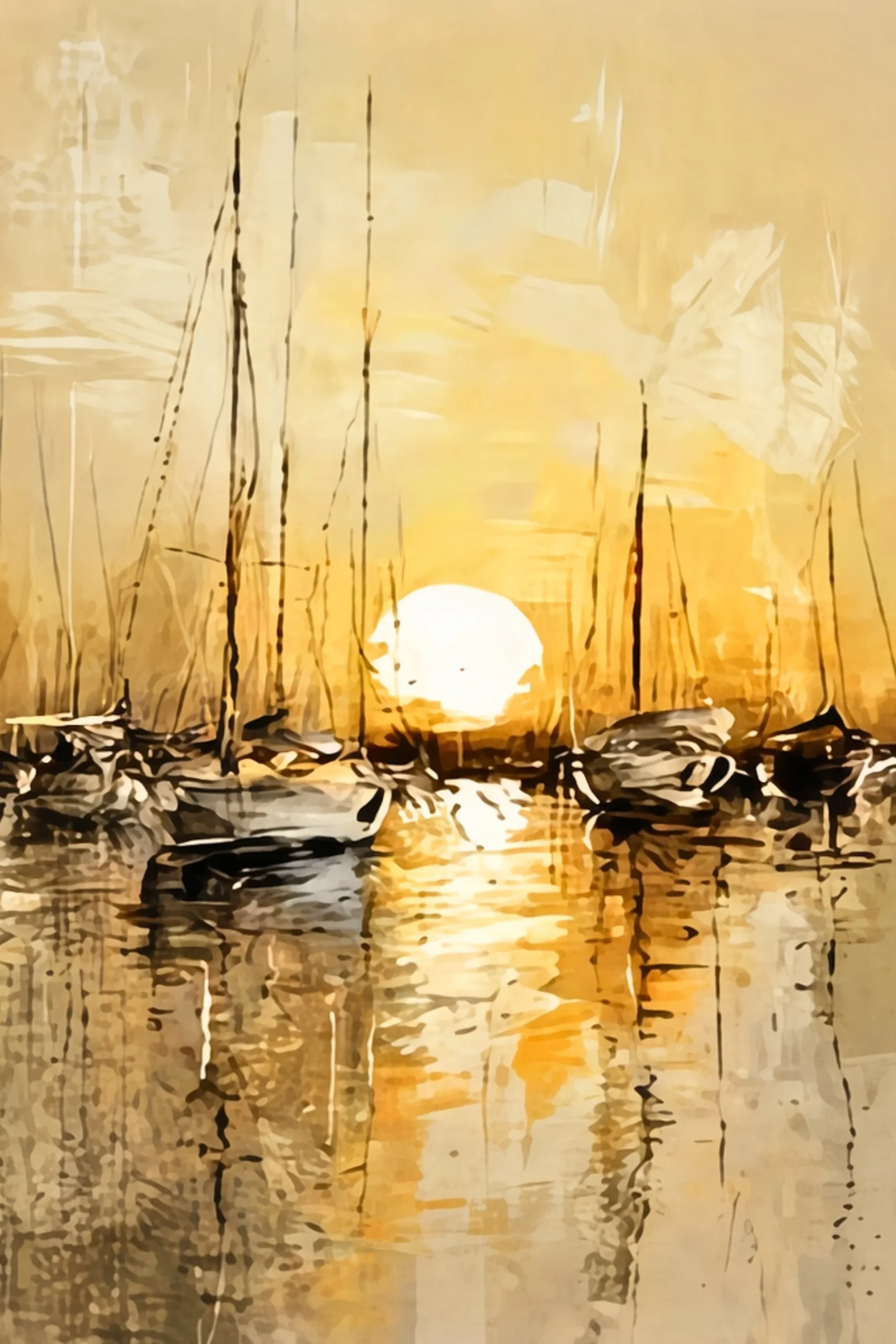 This painting portrays a lone sailboat gracefully moving toward the glowing horizon, symbolizing hope, courage, and the journey toward brighter days. The warm hues of the sun reflecting on calm waters create a soothing and uplifting atmosphere, making it a perfect addition to any space.