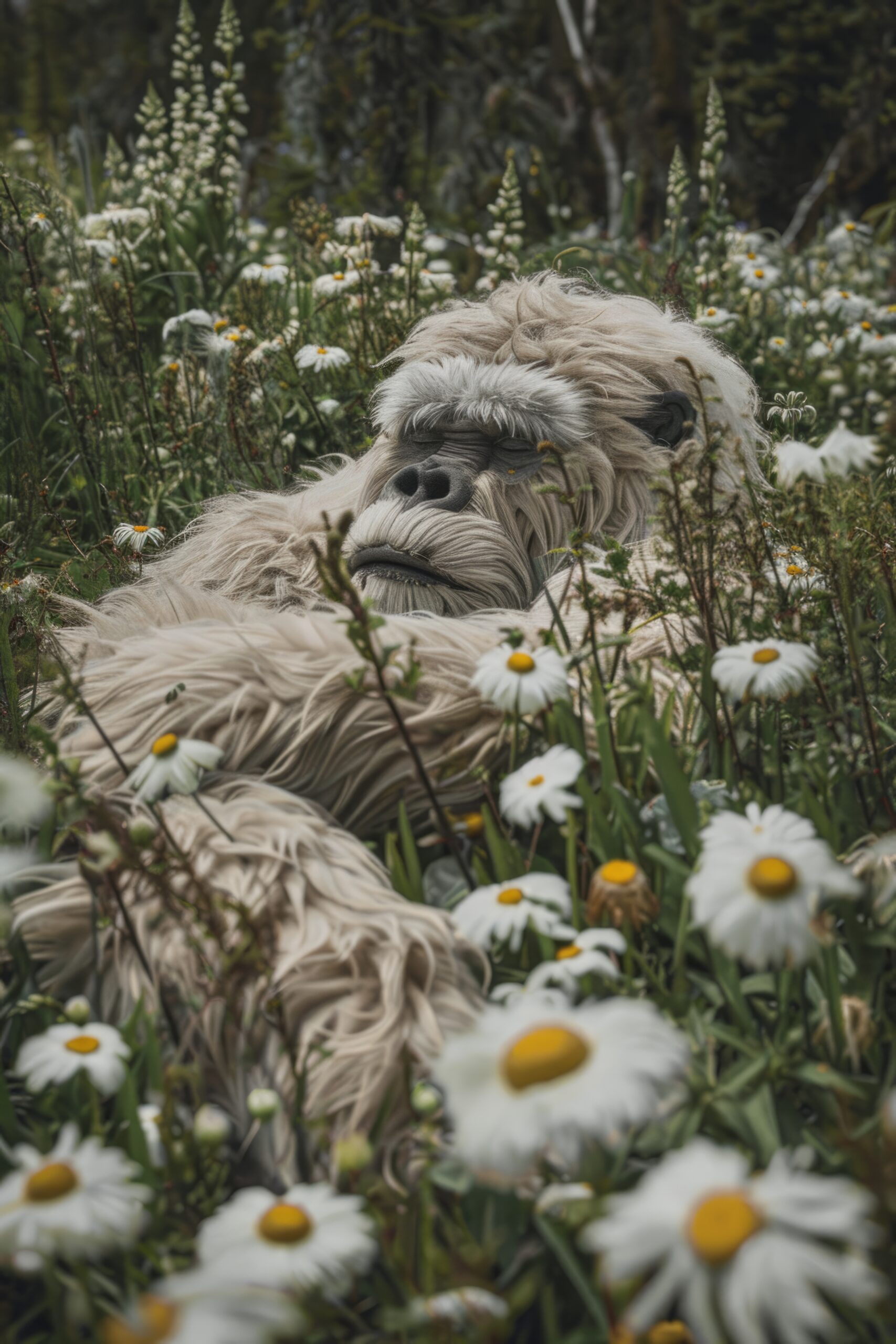A mysterious and intriguing artwork depicting a Sasquatch in a natural outdoor setting, blending folklore with wilderness scenery.