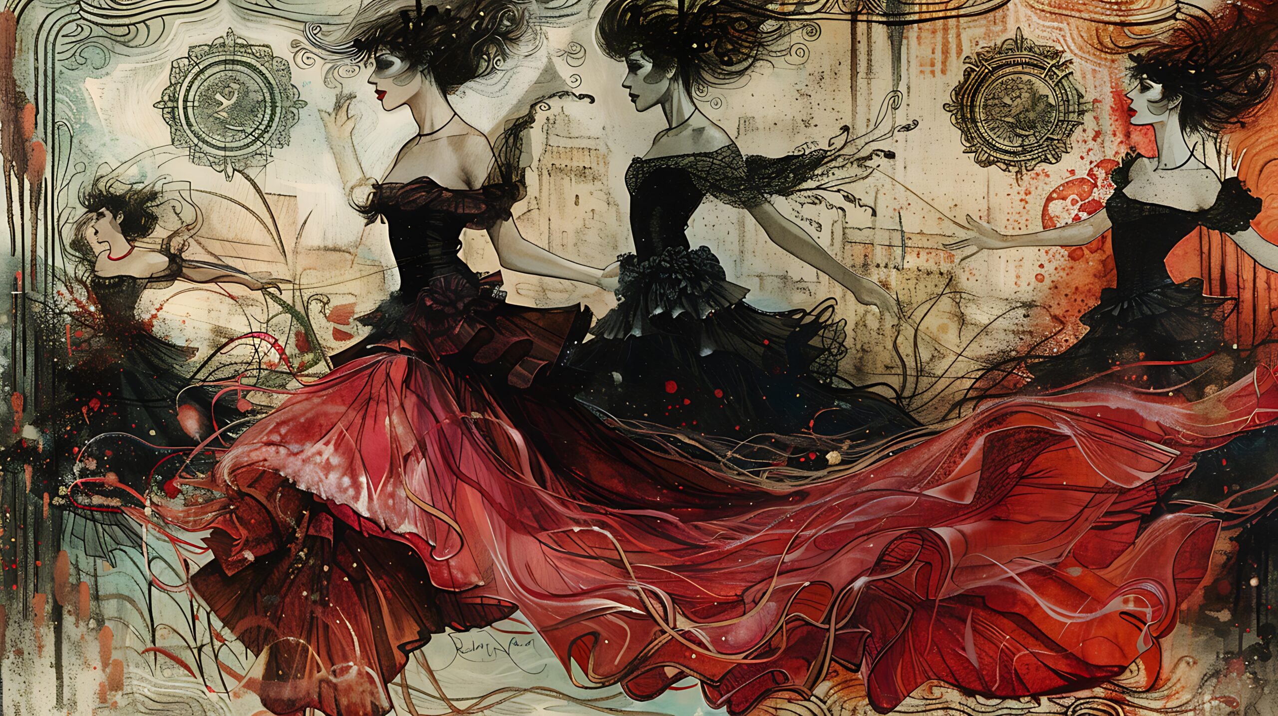 At Arc Art Gallery, we present Abstract Painting Four Women Red Black Dresses, a captivating canvas piece designed to transform your space with artistic flair and sophistication. This artwork features four women in flowing red and black dresses, brought to life through abstract brushstrokes that convey movement, emotion, and individuality.